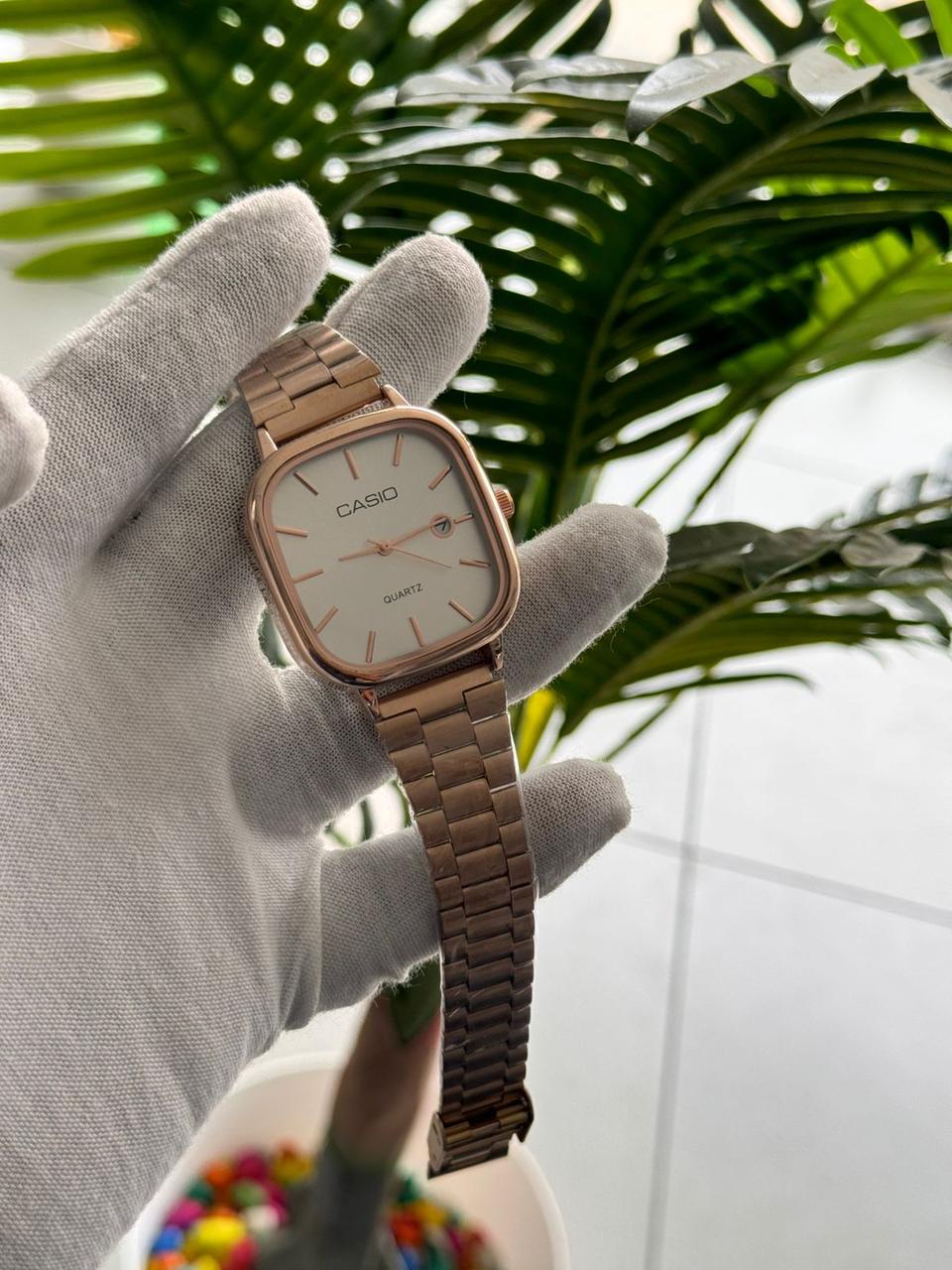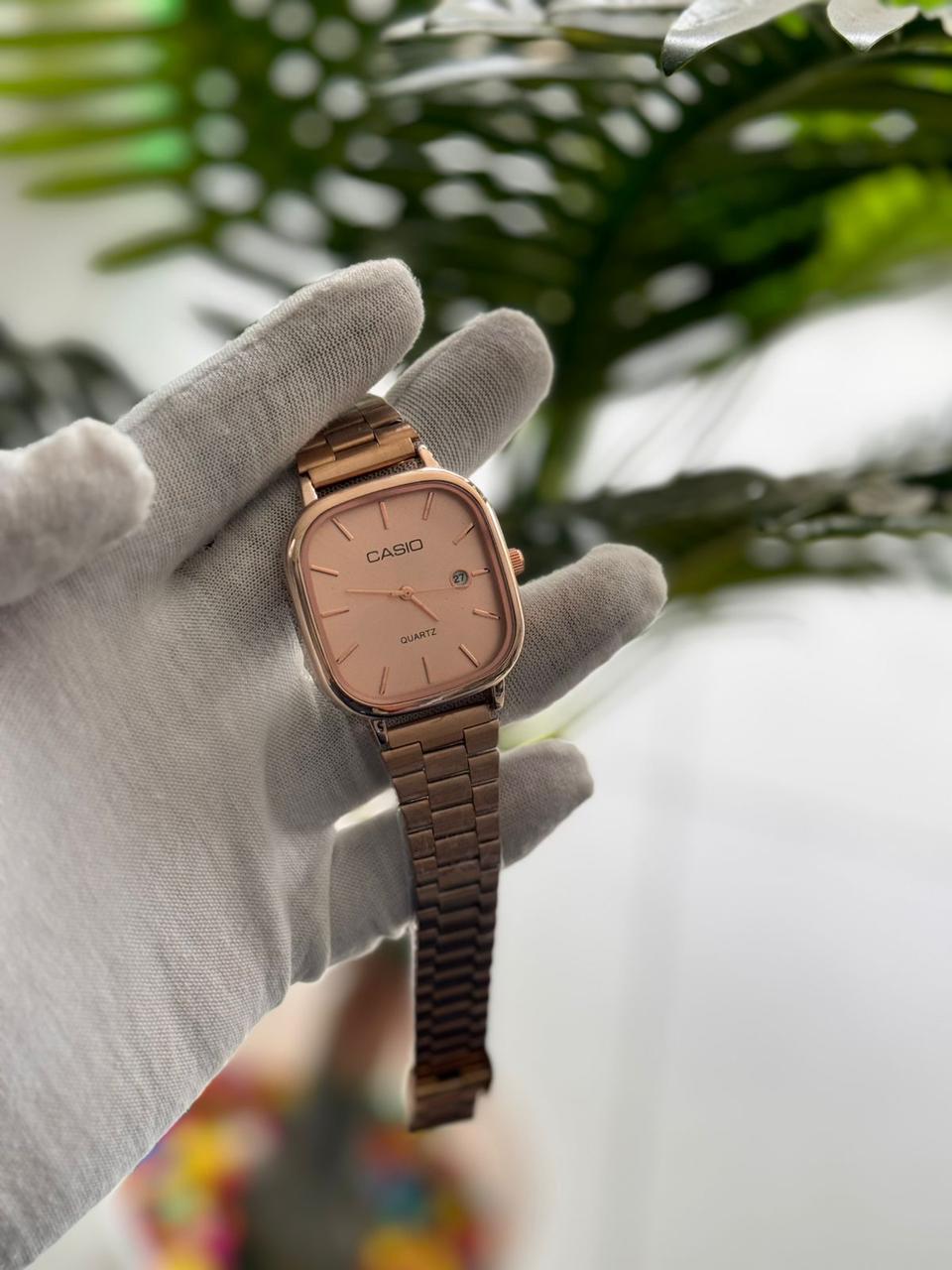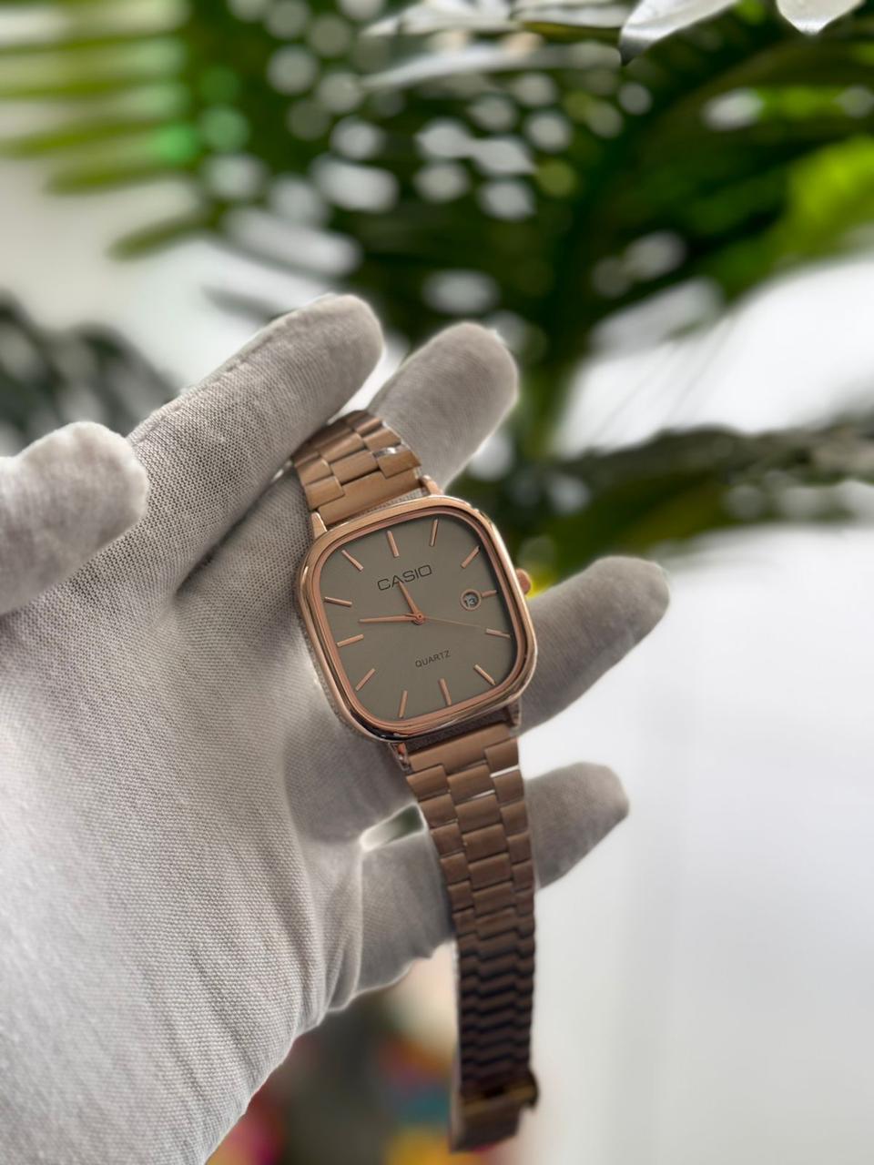 The Casio Analog Quartz Watch features a sleek square dial with a premium rose gold finish, offering a perfect blend of elegance and minimal design. Crafted for those who prefer a classy and modern look, this watch is suitable for daily wear, office use, and special occasions. Its clean dial design and comfortable metal strap make it a timeless fashion accessory.