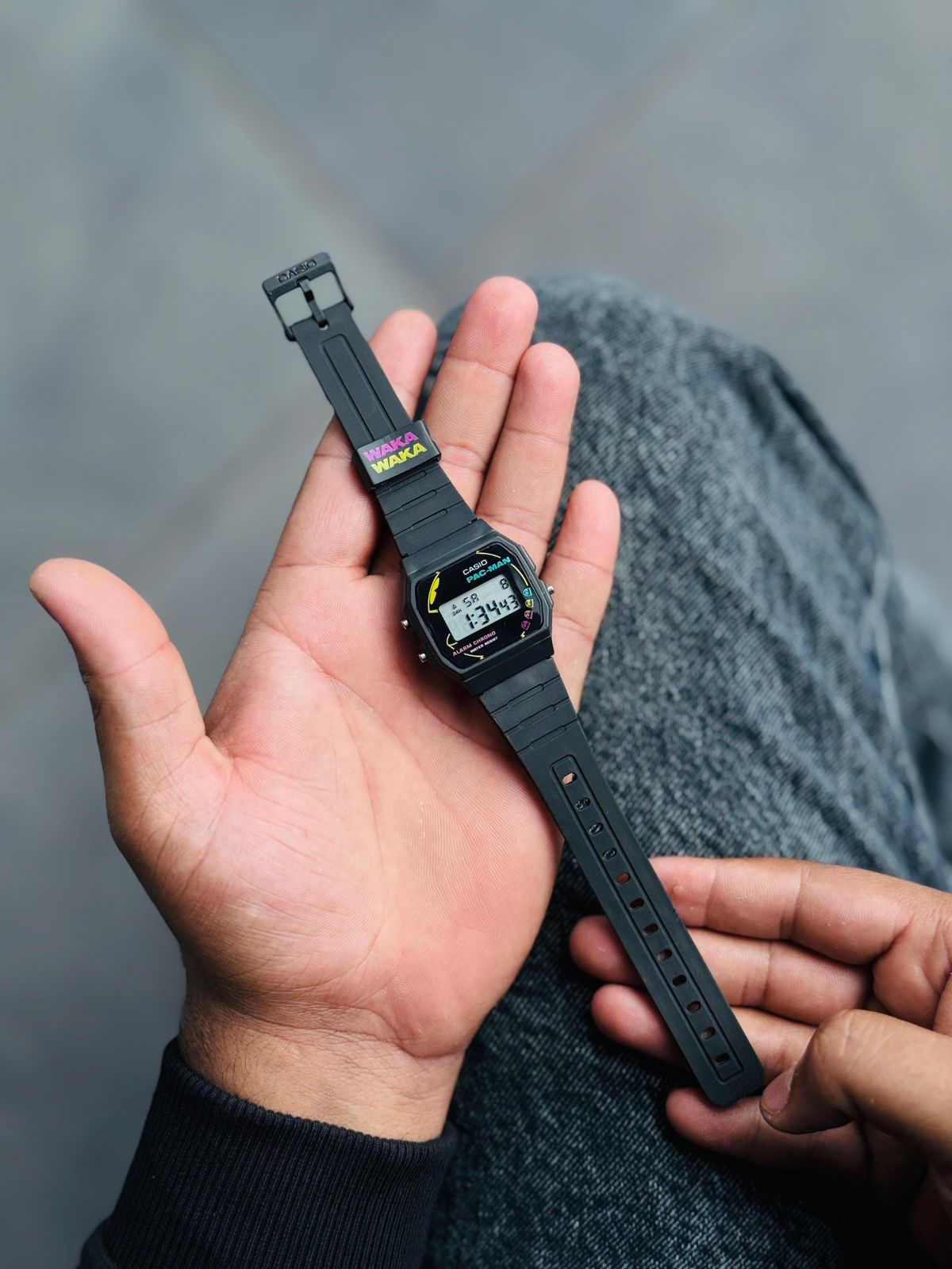 The Casio PAC-MAN Digital Watch is a special-edition timepiece inspired by the iconic retro arcade game PAC-MAN. It combines Casio’s classic digital watch design with playful graphics and vibrant colors, making it a perfect choice for collectors, gamers, and vintage-style lovers. Lightweight, durable, and fun, this watch is ideal for everyday wear while adding a nostalgic touch to your outfit.