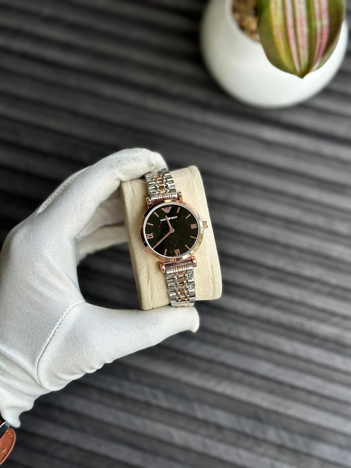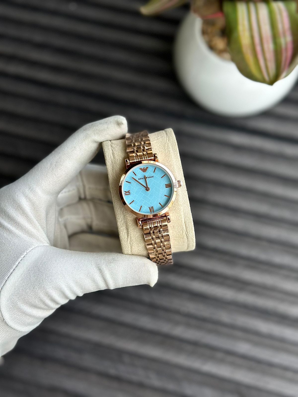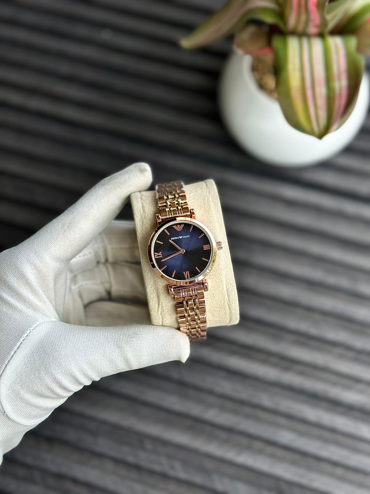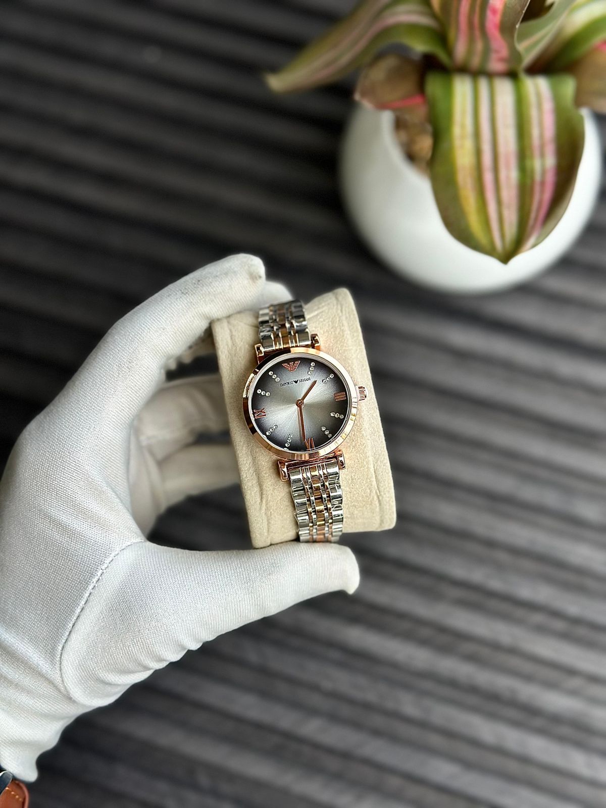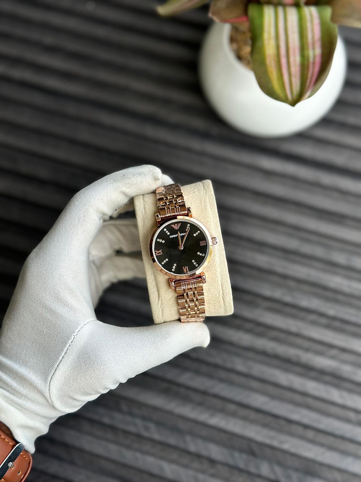 An Emporio Armani wristwatch, likely from their women’s elegant fashion watch collection.