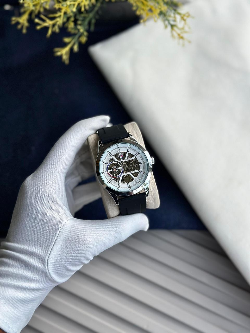 Experience the perfect combination of engineering precision and contemporary design. This automatic watch runs on a self-winding mechanical movement, eliminating the need for batteries. The sporty silicone strap ensures all-day comfort, while the elegant skeleton dial adds a luxury touch. Available in multiple dial color variants, it suits different style preferences.