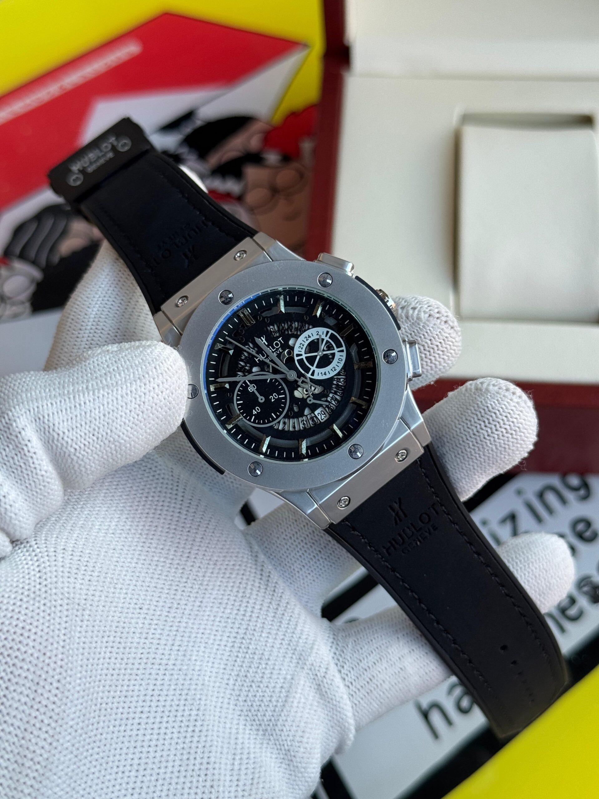 ✔ Bold black dial with detailed sub-dials