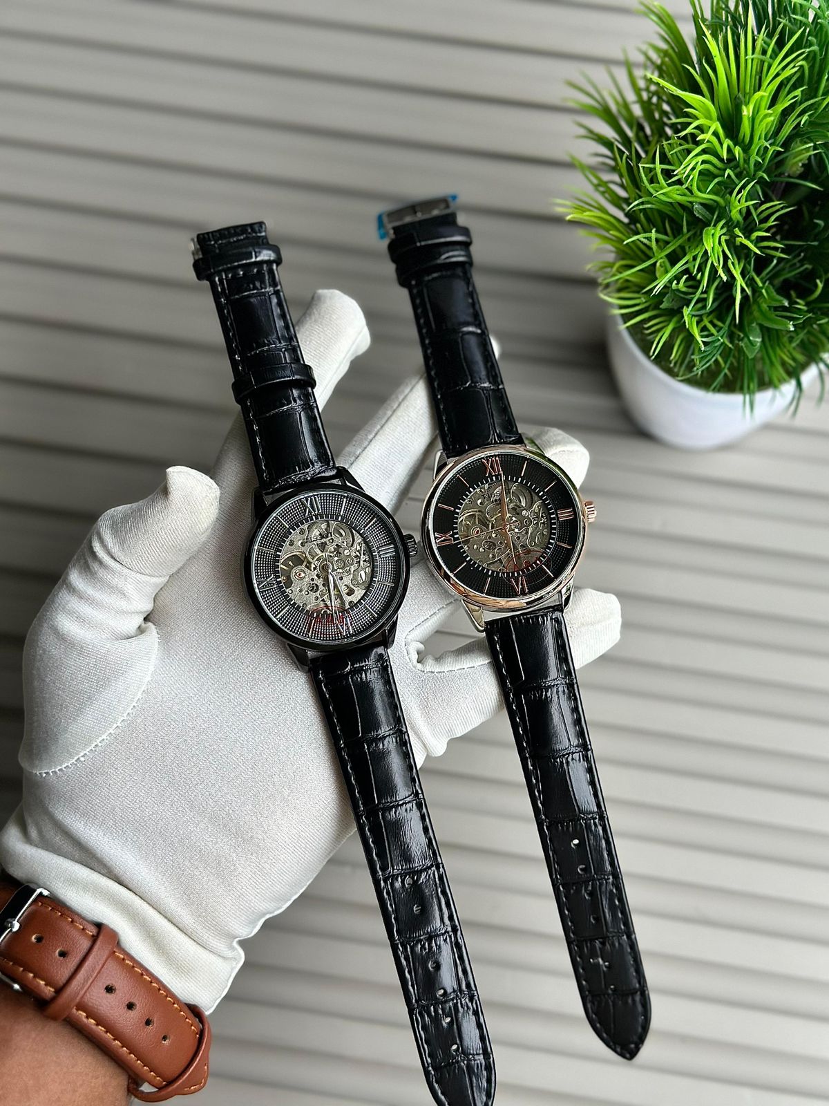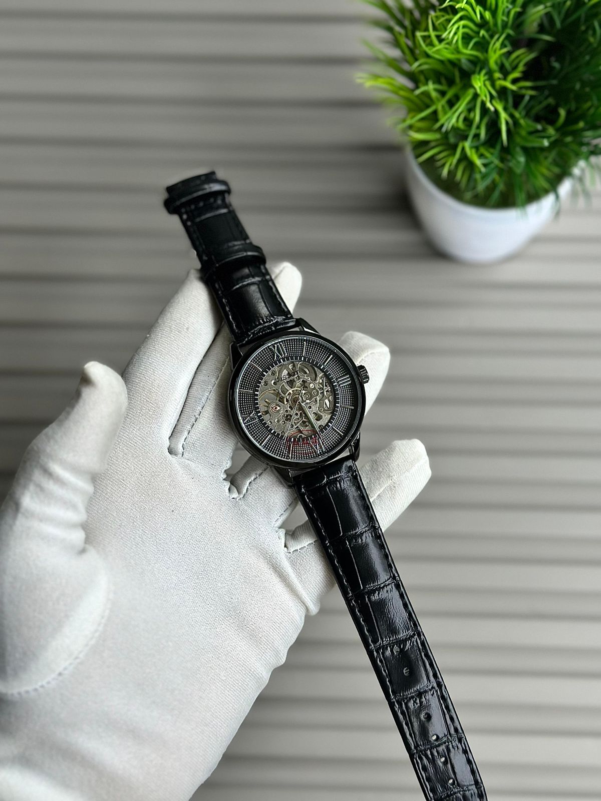 Crafted with a sleek black metal case and paired with a premium black leather strap, this timepiece is ideal for formal occasions, office wear, and special events. The automatic self-winding movement means no battery is required—simply wear it and let your motion power the watch.